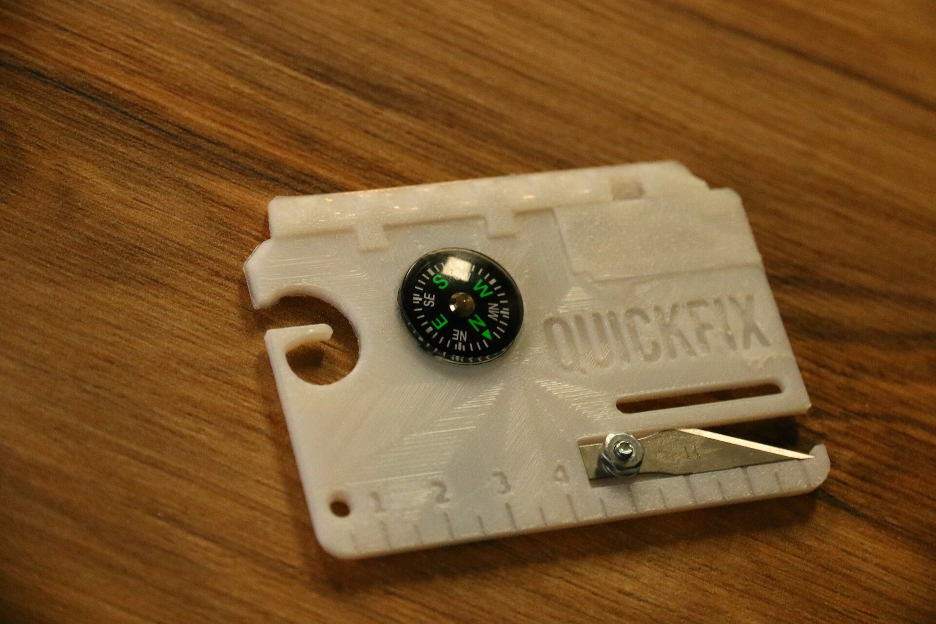 The QuickFix card is engineered to be your everyday companion, offering a multitude of functions in a single, durable design. This 85 x 60 x 7.5 mm card includes a cutter, ruler, ice scraper, keychain hole, key lever slot, bottle opener, hook, and whistle. Plus, with a built-in NFC sticker, you can streamline your daily tasks. Discover the convenience and reliability of QuickFix.
