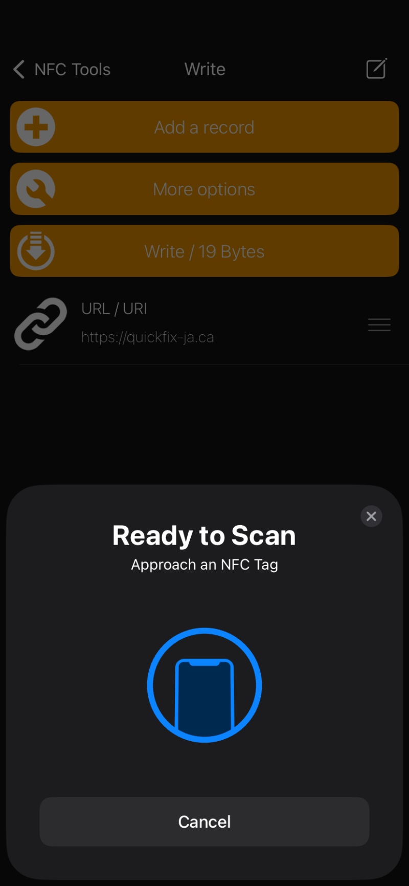 6. Click "Write" to write to the NFC tag.